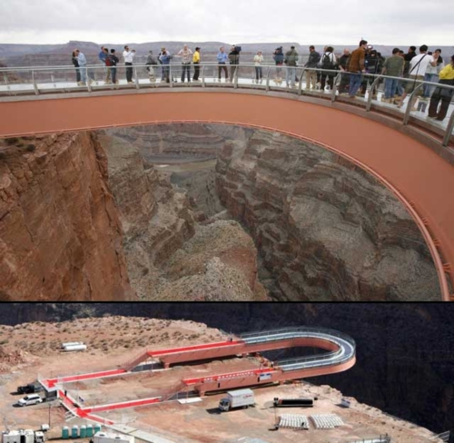 Čak i oni koji se vrlo direktno protive arhitektonskim intervencijama u prirodi, ne mogu da se otmu utisku koji ova platforma ostavlja. Stajati na 5cm debelom staklenom podu, svakako može izazvati vrtoglavicu, posebno ako se u obzir uzme da stojite na 1.097m iznad provalije. Platforma je oblika potkovice, i od litice je udaljena celih 20m, a predviđeno je da može da izdrži 70 tona.