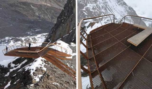 Na najvišoj tački planine Isidor, u Tirolu, nalazi se gibka moderna platforma napravljena od drveta i čelika, koja se pruža na oko 8,2m od same ivice grebena. Arhitektonski studio Arste Architecture, kreirao je ovu platformu tako da bude što manje upadljiva u prostoru, kao i da tokom zime gotovo nestane utapajući se u belini prostora.
