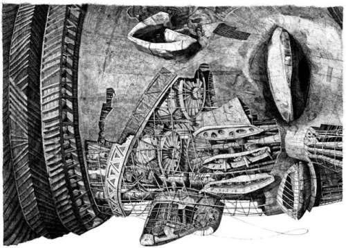 Britanski arhitekta priča: „Crteži velikih formata olovkom ili mastilom omogućavaju artikulisanje intenziteta svetla i senke u divljem pejzažu. Energija linije opisuje latentnu atmosferu misterije i sirovosti, utisak koji možemo da osetimo ponovo samo šetajući se dugo kroz prirodu.“