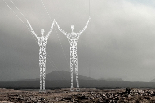 Poput statua sa Uskršnjeg ostrva, ove 45m visoke moderne kariatide, ćutke će prenositi električnu energiju za modernog čoveka, po danu, noći, suncu ili snegu.