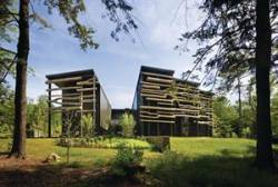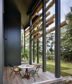 Rustične tranzene (perforirane uglavnom kamene ploče koje su zatvarale prozore, karakteristične naročito za sakralnu arhitekturu - prim. prev) od debala daju ovoj kući pored jezera u Novoj Engleskoj jedinstveni izgled, ali nemaju samo dekorativnu ulogu.