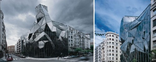 Zgradi sedišta Baskijskog zdravstvenog odseka u Bilbaou bila je potrebna energetski efikasna nadgradnja, ali umesto da sruše celu zgradu i počnu ispočetka, Coll-Barreau Architects su radije dali postojećoj građevini staklenu fasadu sa naličja koja ne samo da je izolovala zgradu, osvetlela je i omogućila ventilaciju, već takođe predstavlja i dramatičan iskaz ka ulici. Neobičan oblik fasade delimično je bio rezultat striktnih pravila gradskog zoniranja.