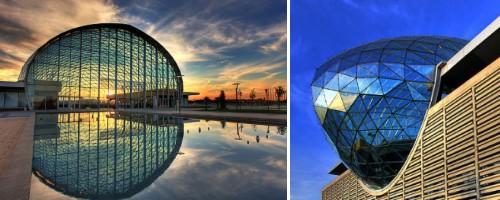 Podsećajući na duguljasti stakleni mehur odozgo, Feria Valencia Convention and Exhibition Center pretvara se u savršeni krug kada se posmatra sa suprotne strane plitkog jezera koje vodi ka njegovom ulazu. Naime, zapanjujuća staklena konstrukcija samo je krov zgrade. Veći deo četvorospratnog centra nalazi se pod zemljom.