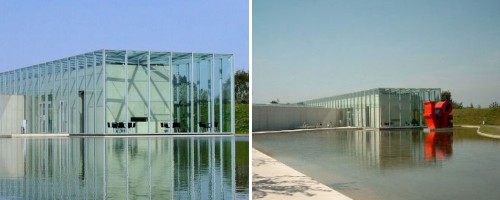 Smeštena u Nojsu, Nemačka u raketnoj stanici Hombrojh, bivšoj NATO bazi, fondacija Langen je muzej koji čuva kolekciju orijentalne i moderne umetnosti. Posetioci ulaze u ovaj kompleks koji je projektovao Tadao Ando kroz prosek u zaobljenom betonskom zidu, a njihov pogled momentalno privlači karakteristična staklena envelopa zgrade. Ova envelopa ne samo da omogućava da hodnici oko betonskog jezgra budu pokriveni, već i reflektuje plitko veštačko jezero na kome se jednim delom nalazi.