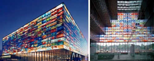 Zamišljen kao savršena kocka čija je jedna polovina zakopana ispod površine zemlje, holandski Institut za zvuk i sliku u Hilversumu predstavlja sanjalačku viziju u modernom ojačanom staklu, svetlucajući u prelivima crvene, plave i žute. U zgradi su smešteni muzej i kancelarije, kao i nacionalni radijski arhiv. Unutrašnji dizajn je konceptualni prevod Danteove Božanske komedije sa krvavo crvenim hodnicima i atrijumom koje arhitekte Vilem Jan Nojtelings i Mihiel Rejdejk (Willem Jan Neutelings, Michiel Reidijk) nazivaju svojim paklom. Obojeni stakleni paneli, koji izgledaju kao odsek daleke stvarnosti, zapravo su čuvene slike sa holandske televizije.