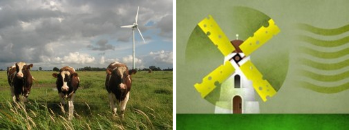 Moderni dizajn turbina na vetar, sa tri lopatice na vrhu visokog, zatvorenog tornja, naziva se holandski koncept. Prototip koji je 1956. godine napravio Johanes Jul (Johannes Juul) radio je jedanaest godina bez održavanja (slika desno).