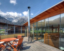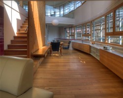 Osnova objekta je od betona na kojoj je podignuta konstrukcija od mešavina drveta, čelika i stakla koja ima tanke čelične stubove i izolovane drvene elemente.
