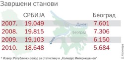 Prodaja stanova u Srbiji je gotovo zamrla. Još se gradi jedino na mestu bivše kasarne Vojvoda Stepa Stepanović u Beogradu. Država je kao investitor tog kompleksa uspela da u protekla dva meseca nađe kupce za 326 stanova. Van ovog državnog projekta, kriza drma graditeljstvo, jer je u istom periodu, prema podacima Privredne komore Srbije, u Beogradu prodato svega dvadesetak gotovih stambenih jedinica. Prošle godine je u prestonici sagrađeno 1.610 stanova manje nego 2008, kada je počela globalna besparica. Na to će, veruju sagovornici novinarke lista Politika, kao so na ranu pasti odluka Narodne banke da uvede 20% učešća za stambene kredite.