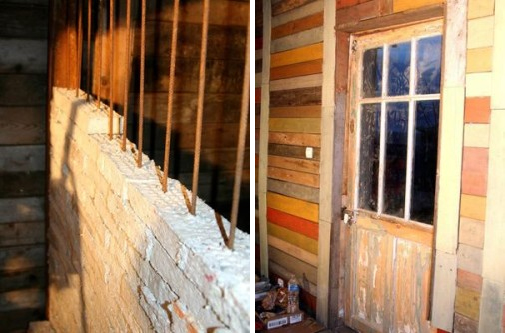Gradnja unutrašnjih zidova od "papirnih" cigli (levo)
