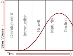 Životni ciklusi proizvoda obično se dele na četiri faze koje se zasnivaju na učincima prodaje i obrazuju karakterističnu liniju u obliku latiničnog slova "S".