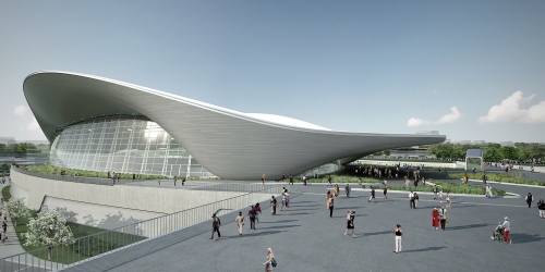 Projektovajući se izvan okvira bazenske hale, krov se pruža ka spoljašnjim delovima i ka glavnom ulazu kod mosta koji će se primarno koristiti u "Legacy" modulu. Konstruktivno, krov se oslanja na 3 glavne pozicije, dok se otvori između poda i krovne konstrukcije koriste za postavku dodatnih sedišta u olimpijskom modulu ili se u "Legacy" modulu ispune sa staklenom fasadom.