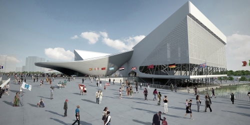 Vodeni centar se obraća glavnom, javnom, prostoru u okviru Olimpijskog parka i slaže se sa strategijom urbanog razvoja Stratforda: jugozapadna linija spajanja Stratford gradskog mosta i Olimpijskog parka koji se proteže pored kanala.