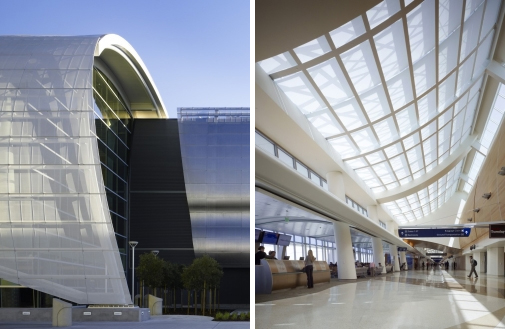 Terminal B međunarodnog aerodroma San Jose, projektovan od strane biroa Fentress Architects, savršeno se uklapa u Silikonsku dolinu. Projektni biro Fentress Architects napravili su zgradu koja koristi prednosti dostupne tehnologije da bi osigurala bezbednost u njoj kao i vrhunske pogodnosti za njene korisnike.