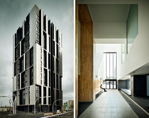 Spolja ka unutra, odozdole do gore, apartmanski toranj Torre E.I.0.5 u Hospitalet de Llobregat, Španija, podseća malo na vizuelnu igru čuvenog grafičara M.C. Ešera (M.C. Escher). Ono što deluje kao petospratnica koja se uklapa u rezidencijalna naselja iz šesdesetih i sedamdesetih godina jeste, u stvari, neboder sa 15 spratova koji može u potpunosti da se reciklira.