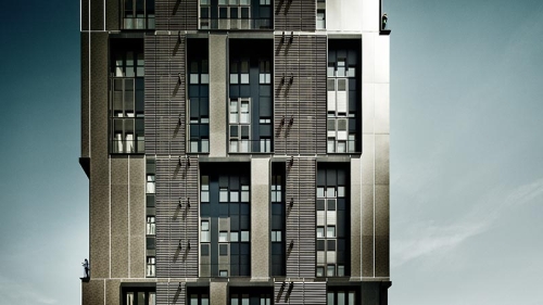 U ovom ramu, arhitekte su grupisali zajedno po pet delova u okviru tri sprata, i opremili svaki deo sa brisolejima. Efekat koji se dobija jeste onaj optičke iluzije gde zgrada iz daleka deluje kao da ima samo pet spratova. Slojevi laminiranih panela od po 8mm vise sa skrivene potkonstrukcije od recikliranog aluminijuma i na taj način prave okvire magaprozora, koji su skoro deset metara visoki sa različitim širinama.