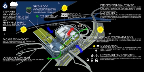 Efekti i pokreti klizanja i proklizavanja forme galerija stvaraju seriju manjih objekata koji se delikatno uklapaju u celokupnu formu muzeja. Ovaj pristup projektovanju održava relativnu zbijenost potrebnu u cilju održive gradnje a u skladu sa omogućavanjem bogate varijabilnosti i mešavina visina i masa koje čini neki prostor interesantnim.