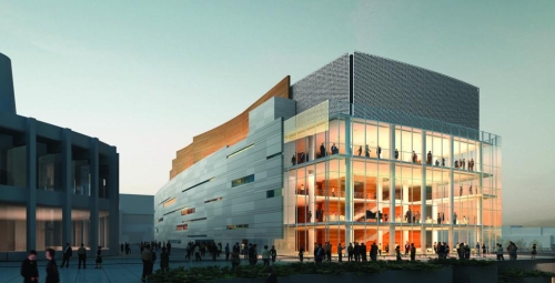 Pored ovih karakteristika objekta, arhitekta Dajmond napravio je veliki urbani gest postavkom koncertne dvorane na terminusu kultrunih kompleksa gde svojim položajem zatvara ulicu (vrlo slično načinu na koji to rade Garnijereva Opera u Parizu i Trijuflana kapija). Na ovaj način ulica dobija drugi karakter i postaje još prominentnija nego što je bila. Pošto se koncertna dvorana nalazi na ovako vrhunskoj lokacije, arhitekta Dajmond ju je isprojektovao da bude vrlo transparentna sa staklenim površinama od poda do plafona, na taj način stvarajući prostor gde možete videti i biti viđeni, ujedno prenoseći osećaj dinamičnosti i uzbuđenja objektu.