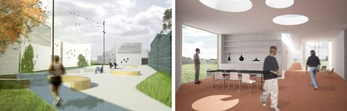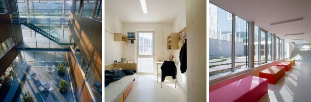 Umesto tamnog, zatvorenog zatvora, ustanova je transparentna i održava životnu vezu sa spoljnim svetom što one koji tu borave podseća na to da njihov boravak na tom mestu nije zauvek.
