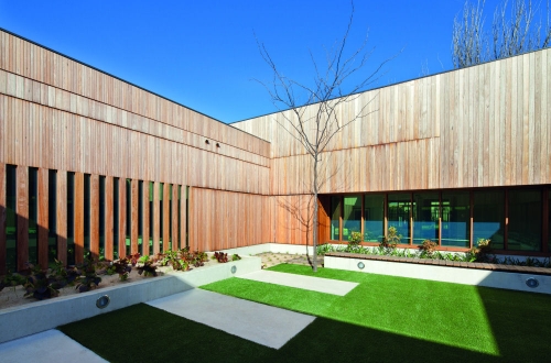 Prosecati medicinsku ustanovu, naizgled, beznačajno u prigradskom okruženju, predstavljalo je arhitektima veliki izazov. Ali, ipak, projektanski tim je projektovao odbrambeno perimetarsko rešenja sa percepcijom javnog, polu-javnog i privatnog prostora koji se međusobno preklapaju i na taj način rešavaju ovo kompleksno pitanje. Velike površine drvene fasade su prekinute sa rasejanim prozorima koji gledaju ka uličnom forntu, ali većina prozora gleda ka unutrašnjem, reflektivnom, dvorištu.
