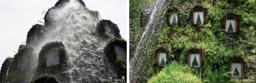 Koliba se nalazi u raznolikom šumskom području severne Patagonije i u baznom kampu rezervata Hulio Hulio. Namenjena je ekoturistima koji dolaze da uživaju u predelima divljine i onima koji žele da vide pumu ili da se dive lokalnim vodopadima. Hotel je u obliku kupe iz čije fasade od vegetacije i kamena vire prozori soba. Vodopad izvire na vrhu kupe i kaskadno se preliva preko zelenog krova, kvaseći biljke i svakoga ko se zatekne ispod njega. Razigrani dizajn ima za cilj da podseti ljude o staroj legendi koja priča o magičnoj planini i mestu koje ispunjava svaku vašu želju.