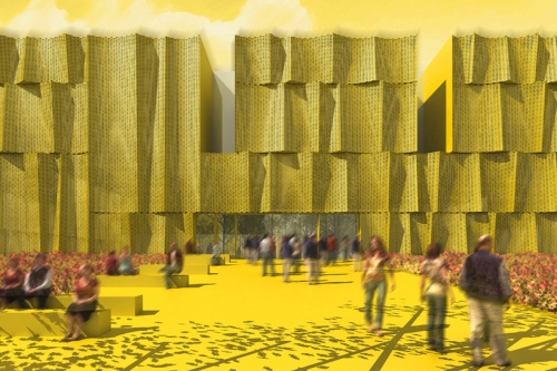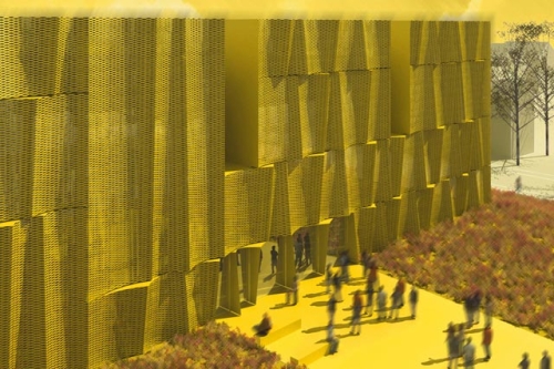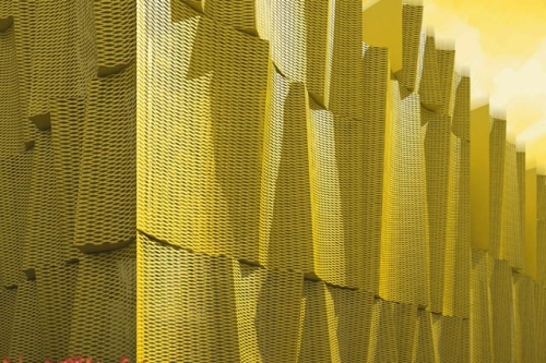 Objekat je obučen u raznovrsnu fasadnu membranu napravljenu od izduženih metalnih ploča obojenih u jake boje. Naizgled komplikovana ali tehnološki jednostavna fasadna obloga, prepletena sa intenzivnom igrom svetlosti i senki, daje objektu prepoznatljiv i lagani izgled koji odgovara karakteru funkcije koji je smešten u njemu. Dodatna funkcija izduženih metalnih ploča jeste zaštita od sunca dok, u isto vreme, omotač zgrade ne ometa vizure njenih korisnika ka spoljašnjosti.
