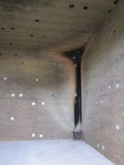Test sproveden u CNPP-u sastojao se u proučavanju ponašanja tri unutrašnja požara krovova tokom 20 minuta. Ponovo je ekspandirani polistiren suočen sa vatrom brzo pokazao svoja ograničenja, emitujući vatrene kapljice i na taj način uvećavajući rizik od širenja vatre na niže spratove. PIR i kamena vuna su očekivano mnogo bolje usporili širenje vatre.