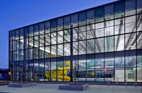 Kontrastno postojećem društvenom centru, koji je relativno objekat bez prozora i okružen drvećem, novi centar je staklena zgrada projektovana da obezbedi obilje prirodnog svetla i transparentnosti koji pozivaju ljude u nju. Fasada, koja je odrađena u kombinaciji metalnih, talasastih, panela sa betonom i staklom, daje objektu dostojan izgled u parku i uklapajući je sa okružujućom izgrađenom sredinom.
