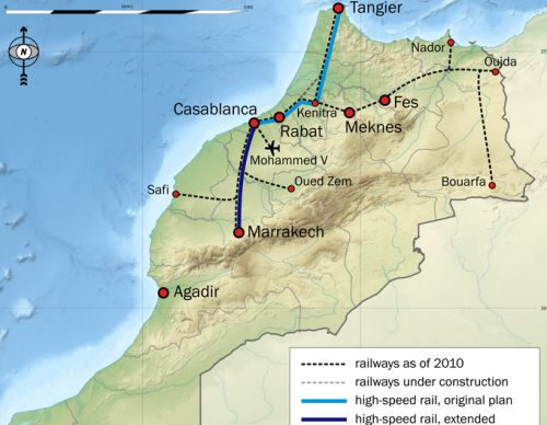 Maroko je na dobrom putu da postane prva afrička država sa brzim prugama kojima će se kretati vozovi brzinom od 320km/h. Već drugu godinu traje izgradnja pruge od Tangera do Kenitre dužine 200km.