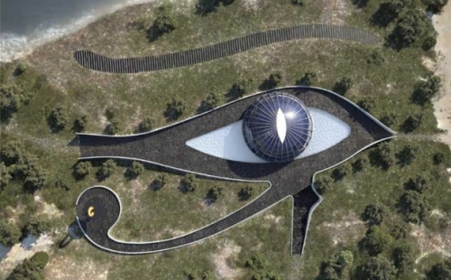 Dom u obliku oka boga Horusa Naomi Kembel sa prikladnom okućnicom je sagraćena na ostrvu Sadir, koje je još poznato u svetu pod imenom Kleopatrino ostrvo koje se nalazi u Turskoj.
