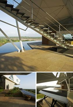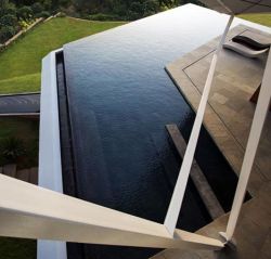 Beskrajni bazen na krovnom tremu neprimetno komunicira sa samom arhitekturom i obezbeđuje vezu onima koji plivaju u njemu sa spoljašnjošću kako nepostojanjem ivice tako i načinom na koji je izbačen kao pozornica iznad tla.