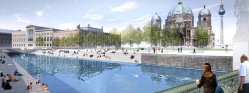 Urbanistički plan koji transformiše slabo iskorišćen rukavac reke Špreje u Berlinu u prirodni „bazen“ dužine 745m osvojio je glavnu nagradu u visini od 100.000 dolara. Projektom Flussbad u srcu istorijskog grada stvorena je zona za plivanje veličine 17 olimpijskih bazena, kao i javni urbani prostor za rekreaciju, kako za stanovnike tako i za turiste, u blizini Museuminsel (muzejsko ostrvo), mesta koje je UNESCO proglasio svetskom baštinom. Od pada berlinskog zida 1989, okrug je doživeo rast populacije od 75%, a paralelno sa tim i gubitak slobodnog prostora.