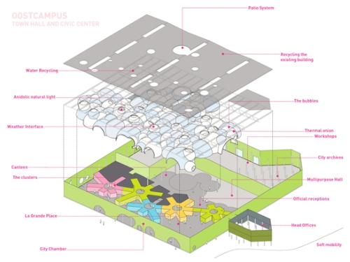 Srebrna Holcim nagrada uručena je projektu kojim je nekadašnja fabrika pretvorena u novu gradsku većnicu i građanski centar u gradu Oostkamp u Belgiji. Osnovna ideja španskog studija „Carlos Arroyo Arquitectos“ nije samo reciklaža osnovne strukture i materijala, već i iskorišćenje samog prostora i njegove tehničke infrastrukture na nov način.