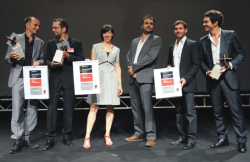 Pobednici Holcim nagrada 2011 (sleva na desno) - Tim Edler (Zlatna), Carlos Arroyo i Vanessa Cerezo (Srebrna), i Tanguy Vermet, Samuel Nageotte i Philippe Rizzotti (Bronzana) |