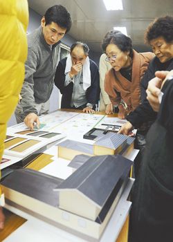 Iako je napolju bilo hladno, topli vazduh uzbuđenja ispunio je sobu za sastanke koja se nalazi u montažnoj zgradi blizu privremenih stambenih objekata sagrađenih za raseljene žrtve cunamija. Nagako Oikava (63), radnica, kaže da je redovna učesnica. "To je kao da svi zajedno stvaramo naš grad od nule. Zbog toga osećam da sam na gubitku ako ne prisustvujem", objašnjava Oikava.