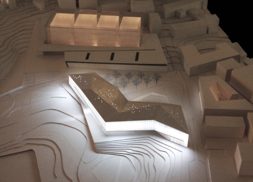 Arhitekte su projektovale izduženu strukturu koja prati južnu i istočnu granicu lokacije. Struktura orkestrira tri okolne ulice, u koherentnom urbanom prostoru, stvarajući novi javni trg za podmlađeni centar grada Jerusalima. Projekat javnog trga obuhvata nekoliko različitih elemenata: potonulu arheološku baštu, zatvarajući ostatke rimskog akvadukta u gradskom centru, terasasti amfiteatar, gaj i razne javne popločane oblasti, za različite aktivnosti posetilaca.