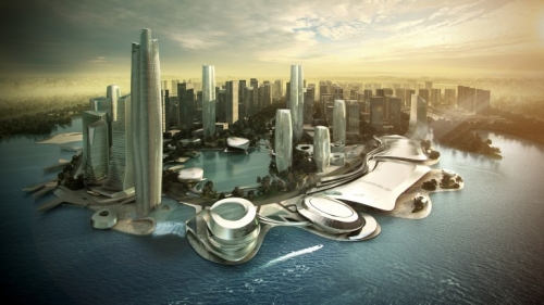 Arhitektonski biro 10 Design osmislio je futuristički model za ostrvo, uključujući i savremene nebodere, pozorišta, konvencijske i izložbene centre i niz komercijalnih i kulturnih objekata. Ka centru okruga ležaće novostvoreno jezero slatke vode, projektovano tako da sačuva sive vode prikupljene sa lokalnih urbanih pejzaža.