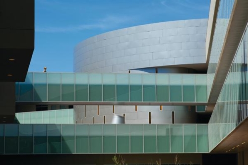 Spolja, trouglasta forma zgrade je nepogrešiva. Arhitektonski biro LPA je izvukao dvoje glavnih spoljašnjih stepeništa u dve tačke trougla i zatvorila ih u staklo. Jedno stepenište se čini kao da pluta u glavnoj enterijerskoj pešačkoj komunikaciji. Drugo stepenište je svetioni koji se suočava sa petljom puta i parking prostorima kampusa. "To je velika zgrada, i ovaj dizaj pomaže ljudima da intuitivno razumeju kako da joj pristupe i kako da se kreću vertikalno kroz nju", objašnjava Karels.