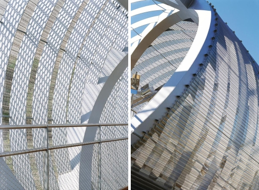 Arhitekta je izabrao mrežu i zbog njenog izgleda i načina na koji funkcioniše na strukturi. "Čelična mreža ima dva osnovna kvaliteta: izdržljivost i činjenicu da je prilagodljiva i fleksibilna kao tkanina", kaže Perault. "Minimalno održavanje je bio ključni zahtev klijenata, tako da nije bilo kakav tip mreže odgovarajući za ovaj projekat. Mreža Escale (proizvod kompanije GKD) je bila pravi izbor zbog svoje sposobnosti da se prilagodi trodimenzionalnom obrascu i zato što je ona jedan od retkih vrsta mreža koja dozvoljava određenu torziju."