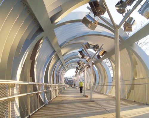 Fleksibilna priroda spirala od nerđajućeg čelika bila je u stanju da besprekorno pokriva strukturu mosta. Konusni oblik strukture i zakrivljenost mreže predstvaljali su jedinstvene projektantske izazove. Rešenje je bilo u stvaranju 64 pojedinačno formirana dela mreže, svaki prilagođen da odgovara podkonstrukciji. Severni deo ima 30 delova, dok južni ima 34. Ukupno, 4.500 metara kvadratnih čelične mreže je postavljeno na mostu.