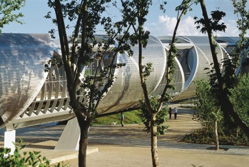 Arhitekta Perault je radio sa kompanijom Düren (nemačka filijala kompanije GKD) u razvoju komponenti za čeličnu, nerđajuću, mrežu za most. Primetni entuzijasta za materijalima, Perault je koristi čelične mreže na brojnim projektima širom sveta i koristio ju je na projektu američkog sedišta kompanije GKD u Kembridžu.