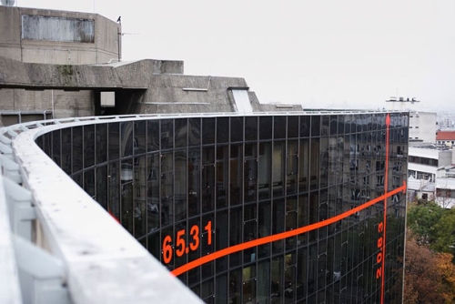 Kako bi javnosti ukazali na značenje ove zgrade i generalnu percepciju izuzetnih arhitektonskih dostignuća arhitekte su, u saradnji s Nacionalnim većem za arhitekturu, na samu zgradu postavili veliku instalaciju, kao nalepnicu preko čitave fasade horizontalnog valovitog dela kompleksa.