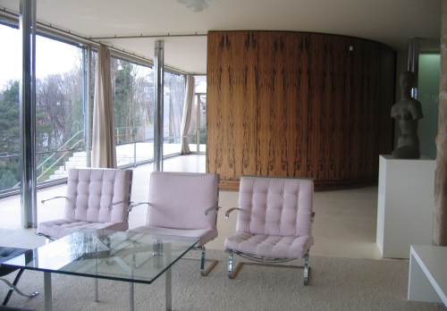 Vrednost i mogućnosti tako postavljenog prostora najbolje ilustruje burna istorija upotrebe zgrade nakon što su je vlasnici 1938. godine napustili, bežeći pred nacizmom. Takođe je arhitekta Mis van de Roe, čiji rad nije odgovarao Hitlerovom monumentalnom ukusu za arhitekturu, pobegao iz Nemačke koristeći bratovljev pasoš. Smestio se u Čikagu, gde je radio u Ilinojis Institutu tehnologije i projektovao veliki broj značajnih objekata, uključujući Seagram zgradu u Njujorku, Memorijalnu biblioteku Martin Luter King Junior u Vašingtonu i čuvenu Farnsvort kuću (Farnsworth House). Umro je 1969. godine.