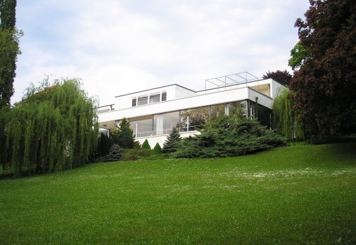 Trospratnica ravnog krova smeštena je na vrhu strmog vrta i gleda na jugozapad. Južni i zapadni zidovi vile napravljeni su od ogromnih prozora čeličnih ramova koji su pružali veličanstveni prizor na istorijske spomenike Brna i spajali, umesto odvajali, objekat sa baštom.