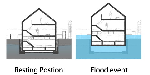Ova tehnologija predstavlja veliki napredak za britanske arhitekte koji već neko vreme istražuju načine za ublažavanje rizika na domove koje se nalaze u područijima podložnim poplavama. Moderna kuća od 225 kvadratnih metara biće smeštena samo deset metara od ivice reke, zamenjujući trenutno trošni bungalov koji se nalazi u Poplavnoj zoni 3b (klasifikovanu kao funkcionalne plavne površine).