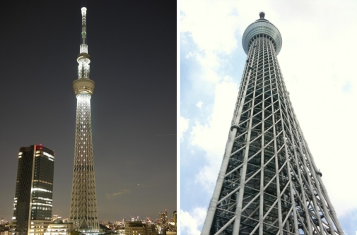 Građevinska kompanija Nikken Sekkei, kompanija koja je iza obe zgrade, je efikasno udvostručila svoj lični rekord u izgradnji Nebeskog drveta, i na taj način zaposlila najnoviju tehnologiju, da ne spominjemo stručnost "više od 100 arhitekata, inženjera i planera" u izgradnji upečatljivog giganta koji je otporan na zemljotrese - superkule za koju njeni projektanti tvrde da je "bezbednija" od bilo koje druge. Kula Nebesko drvo ima odnos širine i visine 9:1 - što je uzana, gotovo iglasta forma.