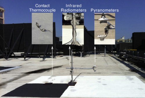 Površinske temperature svake površine su bile merene naspram crne kontrolne površine korišćenjem infracrvenih radiometara. Pored toga, piranometri su korišćeni za merenje kratkotalasno zračanje - ujedno onu koja pristiže na površinu (dolazno zračenje) i onu koja napušta površinu (reflektovano zračenje), sa kojom se emisivost površine (njena sposobnost da zrači energiju) određuje.
