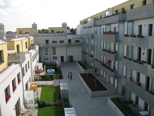 Brilijantan dokaz ovog sistemskog pristupa predstavlja urbanističko rešenje i optimalno korišćenje parcele u predgrađu Beča za objekte socijalnog stanovanja. Kompaktan blok (3-5 spratova), u osnovi zatvoreno slovo „E“ koristi sve pogodnosti lokacije- maksimalne solarne dobitke.
