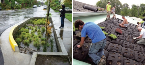 Ovi projekti mogu da stvore značajne uštede troškova. Njujork planira da izgradi zelenu infrastrukturu u cilju smanjenja ispuštanja u njegovom kombinovanom kanalizacionom sistemu - očekuje se da će projekat spasiti oko 1,5 milijardi dolara u prečišćavanju i infrastrukturnim troškovima za 20 godina. Zamena ulične infrastrukture u Sijetlu sa propusnim podloga i drugom zelenim karakteristikama su smanjili troškove skoro za polovinu.