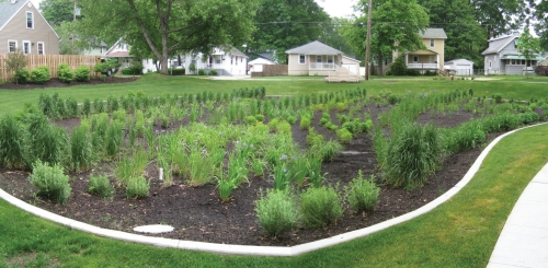 Tehnologije tipa propusnih podloga i kišnim baštama mogu da zarobe, prirodno leče i filtriraju atmosefalije nazad u zemlju, što sprečava poplave i smanjuje oslanjanje na prečišćivačke centre. Postojeća zelena infrastruktura u Čikagu, koja uključuje njene zelene aleje, preusmerava oko 70 miliona galona atmosferskih voda iz postrojenja za prečišćavanje u 2009. godini, navodi se u izveštaju.