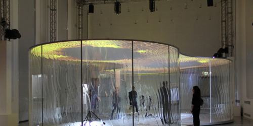 Reč je o tehnologiji „tekućih kristala“ u kojoj se visokom preciznošću toplinskog prenosa stvaraju stakleni paneli. Proces izrade omogućava dizajnerima i arhitektima da kontrolišu stepen transparentnosti i zamućenosti, stvarajući tako zanimljivu igru boje i svetlosti. Dobijeni paneli su glatki sa spoljašne strane, dok neravnine sa unutrašnje strane omogućuju lom videa, predstavljajući ga u svim mogućim prostornim odnosima.